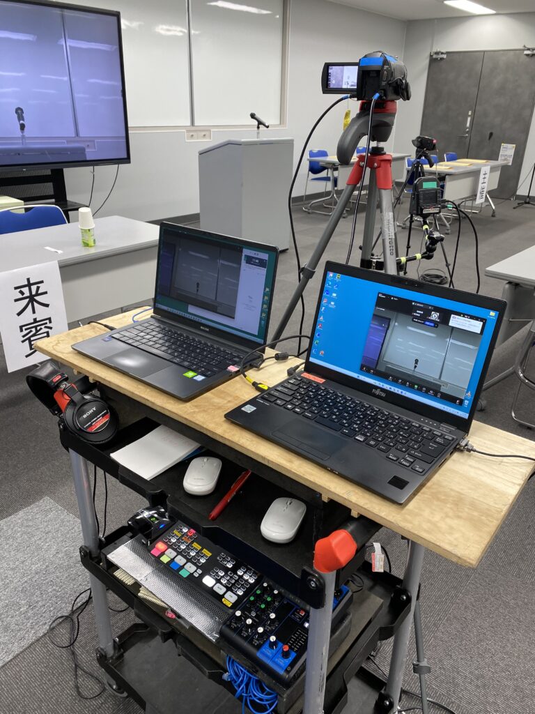 選択肢としてハイエンドな配信設備による配信か、簡易的にパソコン内蔵のウェブカメラとzoomアプリケーションの共有画面を使用しての配信となるかと思いますが、前者では大掛かりな設備の前に参加者や登壇者が委縮してしまいうまく発言出来ないという意見や、費用も多大なものになってしまいます。